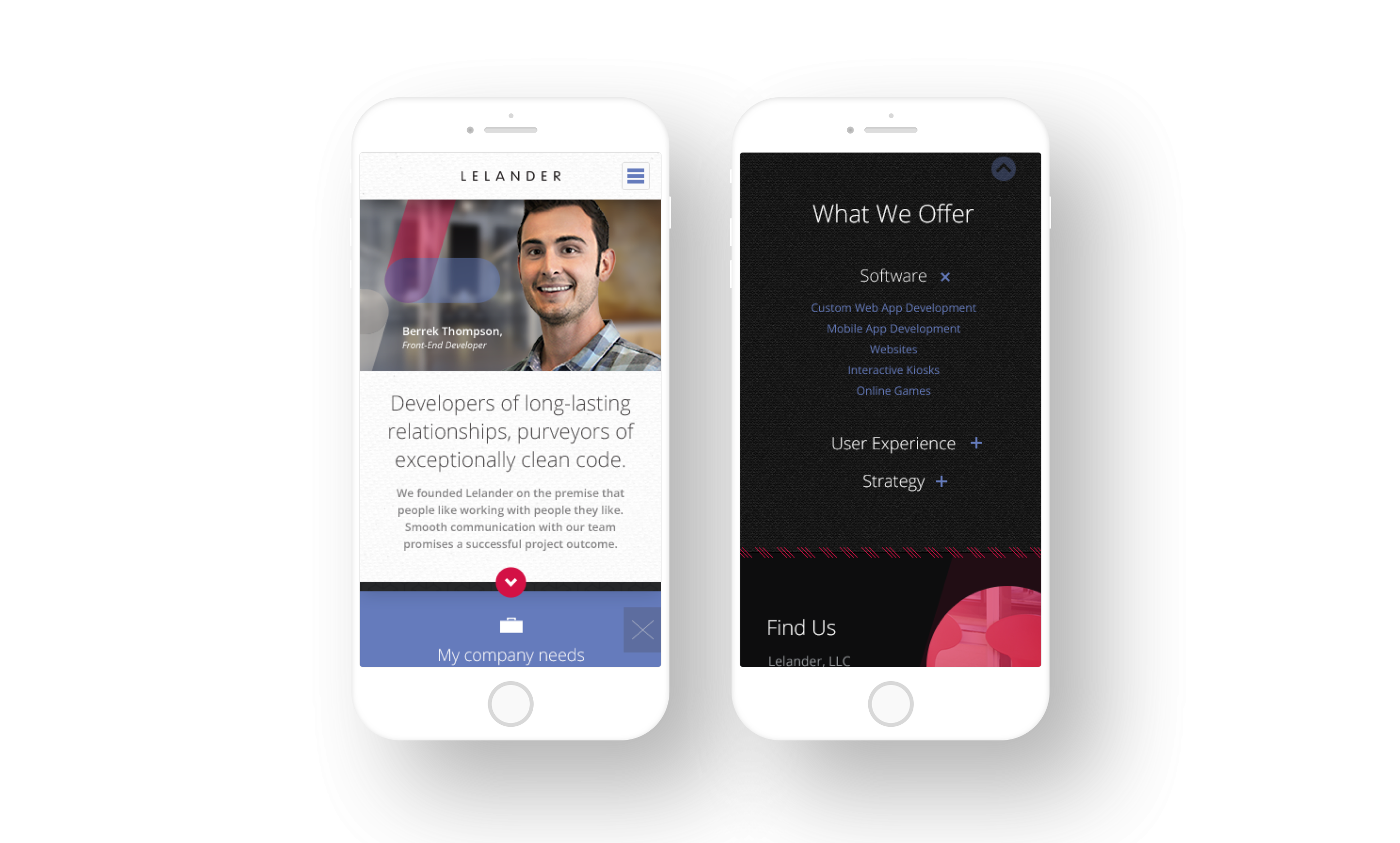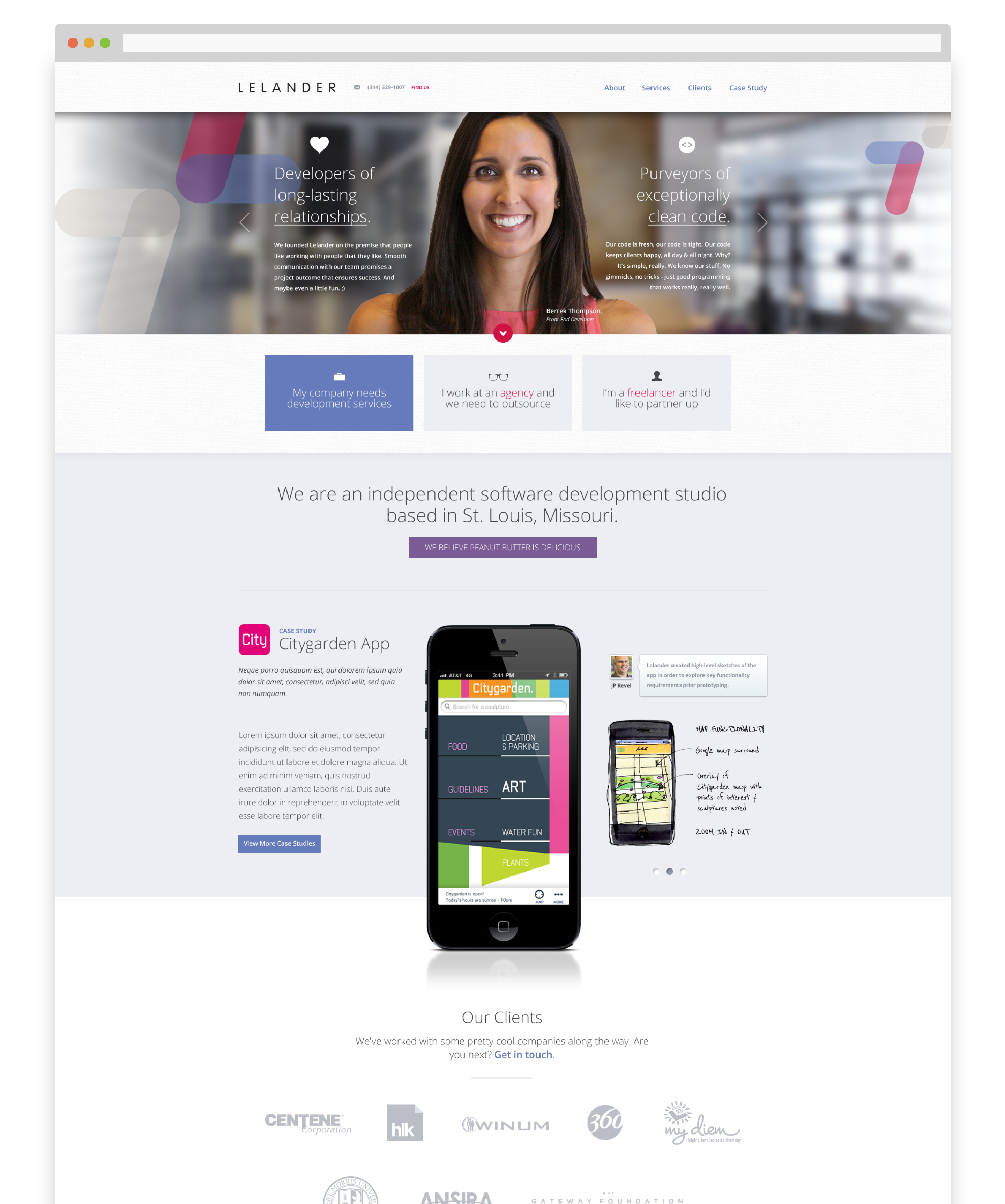 After working together on several client projects, Lelander, a development agency in Saint Louis, approached me to redesign their digital brand and consult on their website overhaul. I helped them reframe their content, develop a “we” statement and other key copy, identify marketing efforts to complement their new website launch (such as the Introduction Email seen below), and created a modern responsive digital presence.