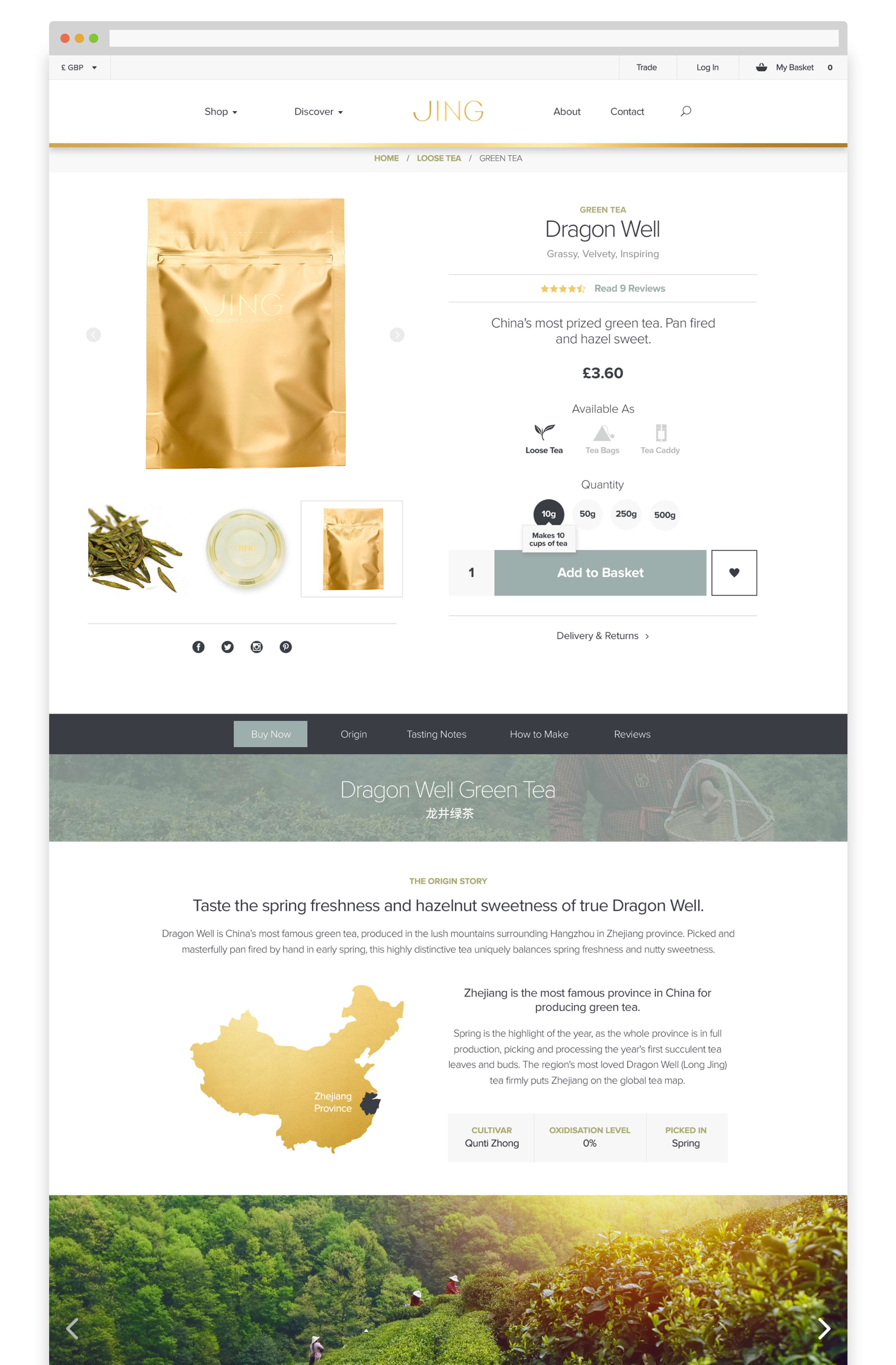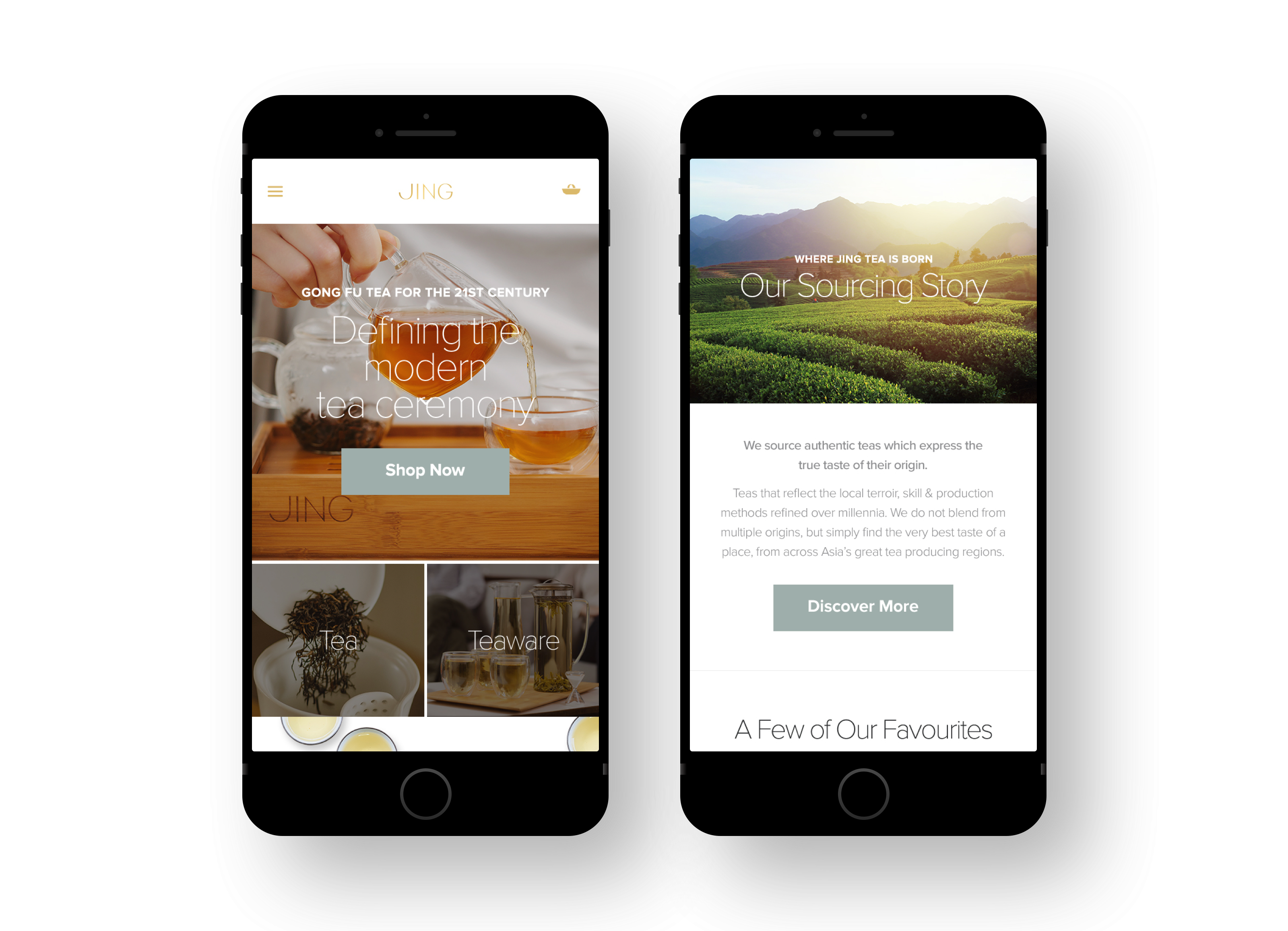 JING's tea offering is unlike any other, in that its quality is unmatched and is enjoyed and praised by fine tea connoisseurs around the world. Their product page had to feel luxurious and needed to beautifully show lush, lovely content. We told a story around the tea whilst also making purchasing feel elegant.