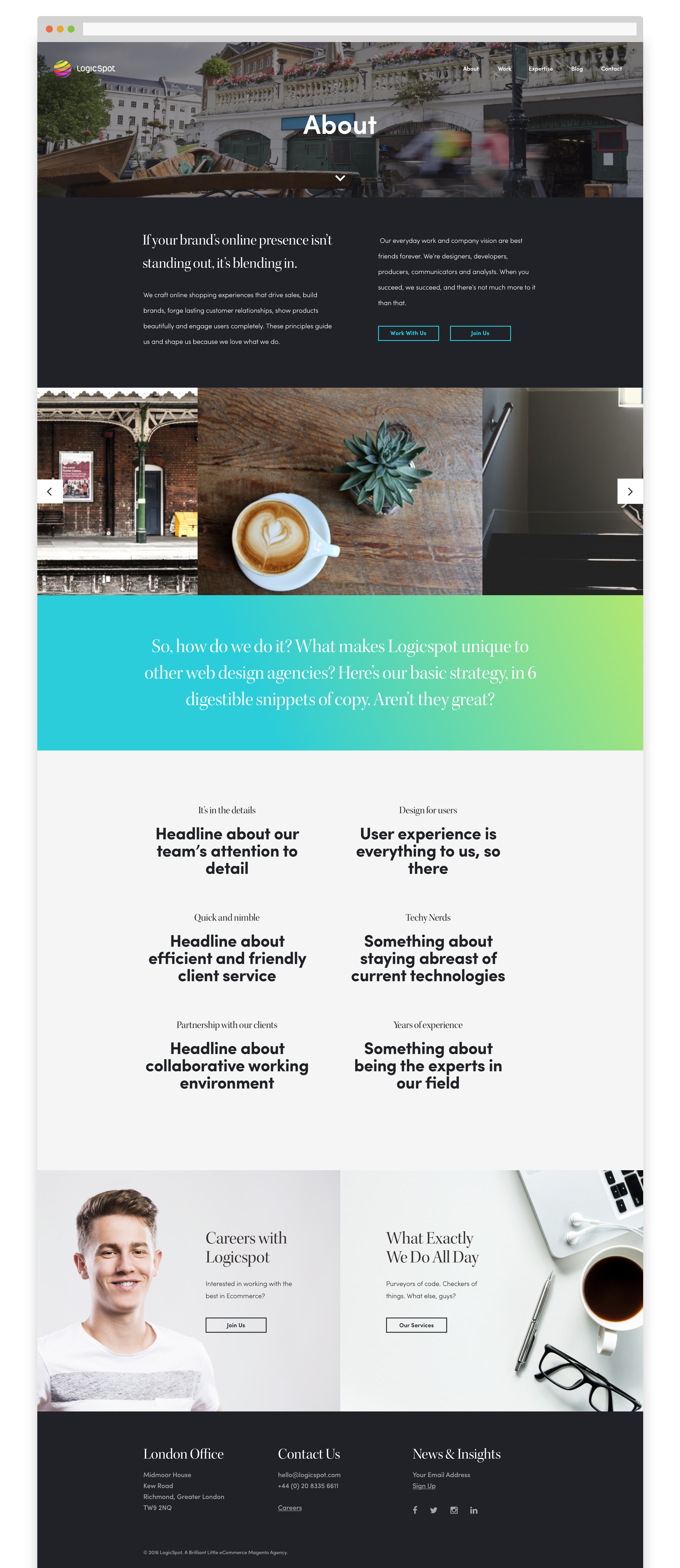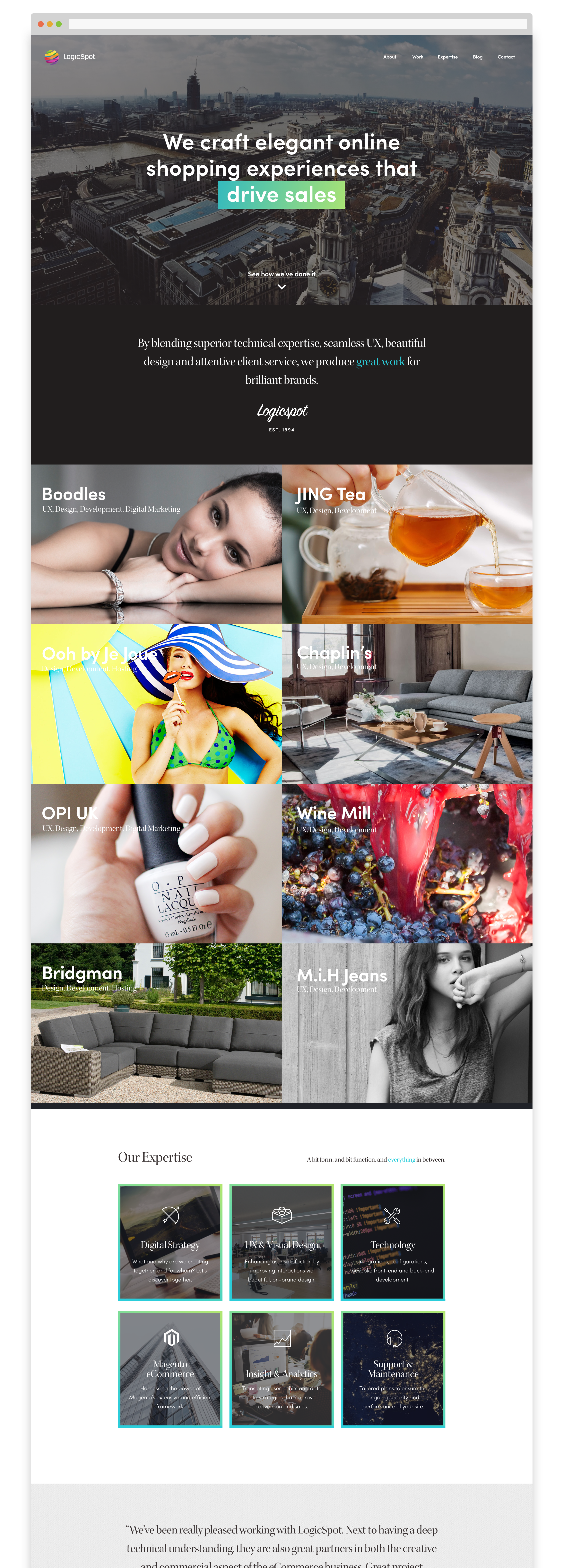 LogicSpot needed a new website that showcased its work, services and team in a sexier, simpler way. I’m currently in the middle of the design process using Sketch, and to fully flesh-out my ideas, I’m writing the site’s copy and prototyping case study layouts.