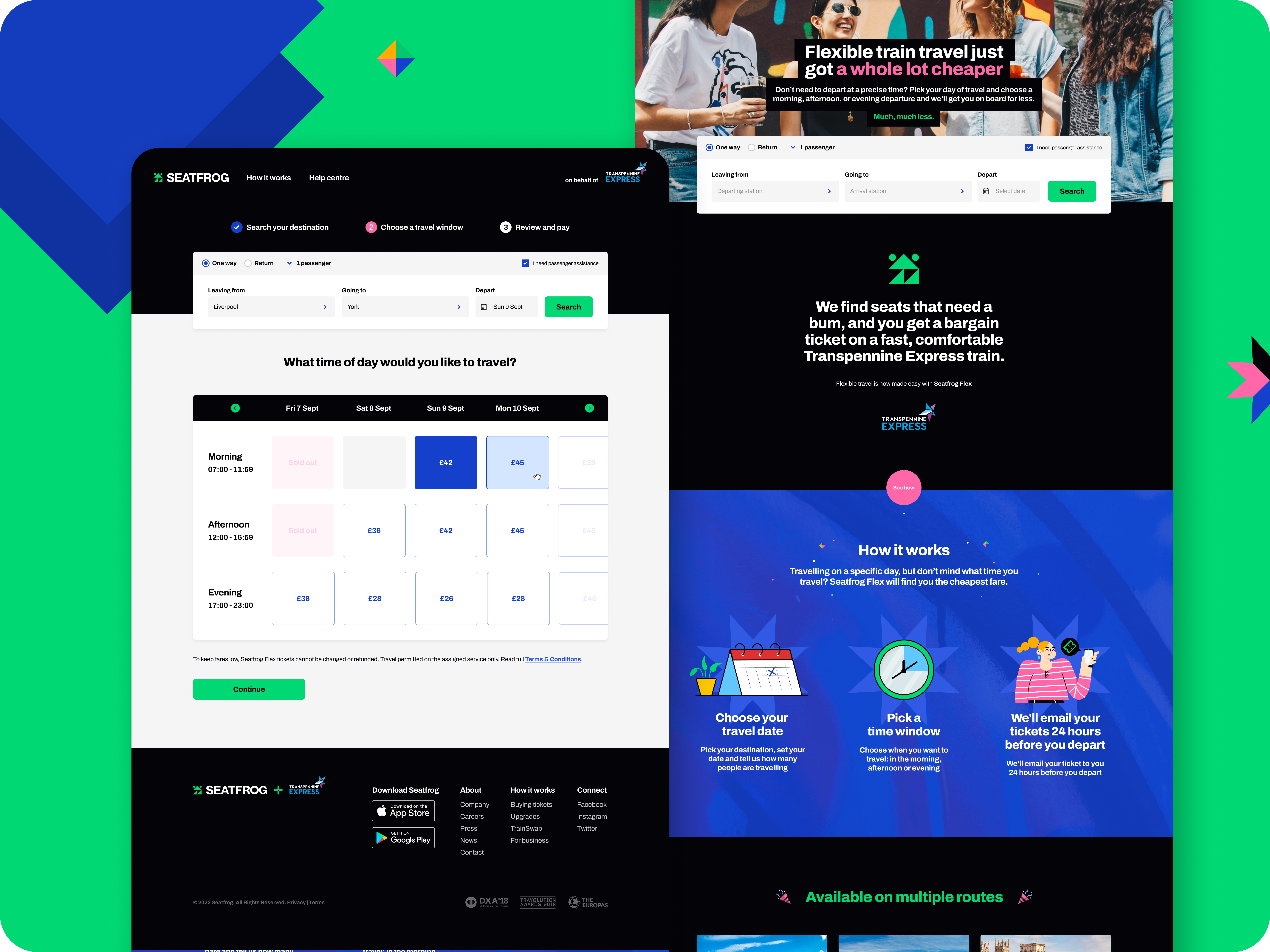 Seatfrog solved this problem at a concept level: passengers who don't need to depart at a specific time can book tickets within a flexible timeframe (morning, afternoon, or evening), and train lines can fill empty seats on less full trains whilst also passing considerable savings on to their customers. A brilliant idea, indeed!